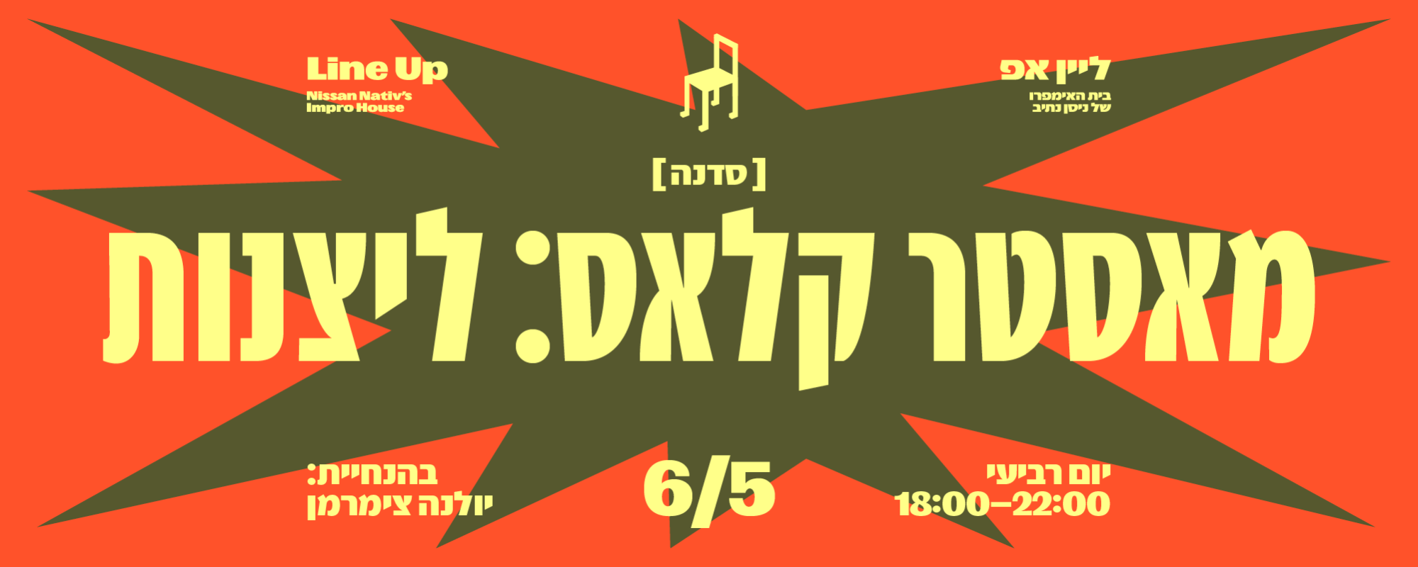 בסדנה נצלול לטכניקות ליצנות שמקפיצות את האימפרוב: עבודה עם כישלון, חיבור לפגיעות, ושחרור השיפוט הפנימי.