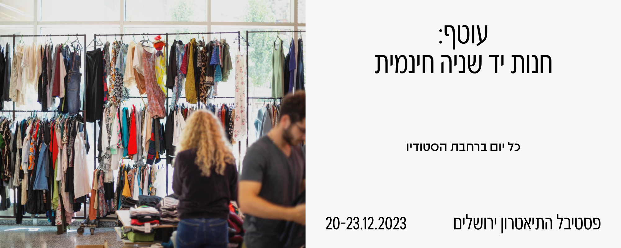 במהלך הפסטיבל תפעל החנות במתכונת מיוחדת, ואתם מוזמנים לבוא ולשהות במקום, להנות מהאווירה ומהמוזיקה. ניתן יהיה לקחת בגדים ולתרום כפי נדבת הלב, כל התרומות יופנו להמשך הסיוע לכל מי שזקוק לכך.